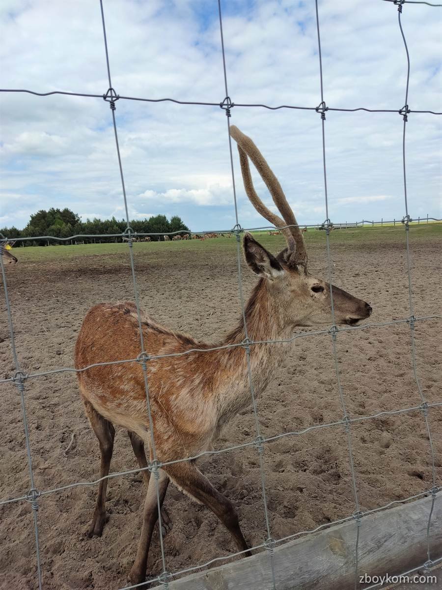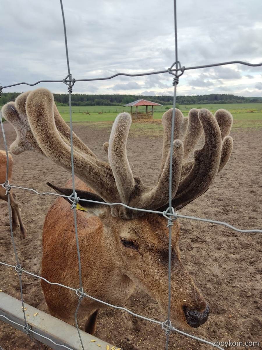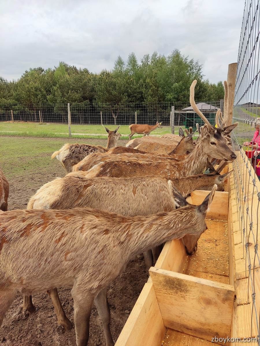 Оленяча ферма – місце, де на великій території у шести великих вольєрах живуть та щасливо почуваються олені різних порід. Олені залюбки підходить до огорожі, де їх можна погодувати спеціальним кормом (1 відерко десь на 1 літр вартує 5 грн, але задоволення маса)