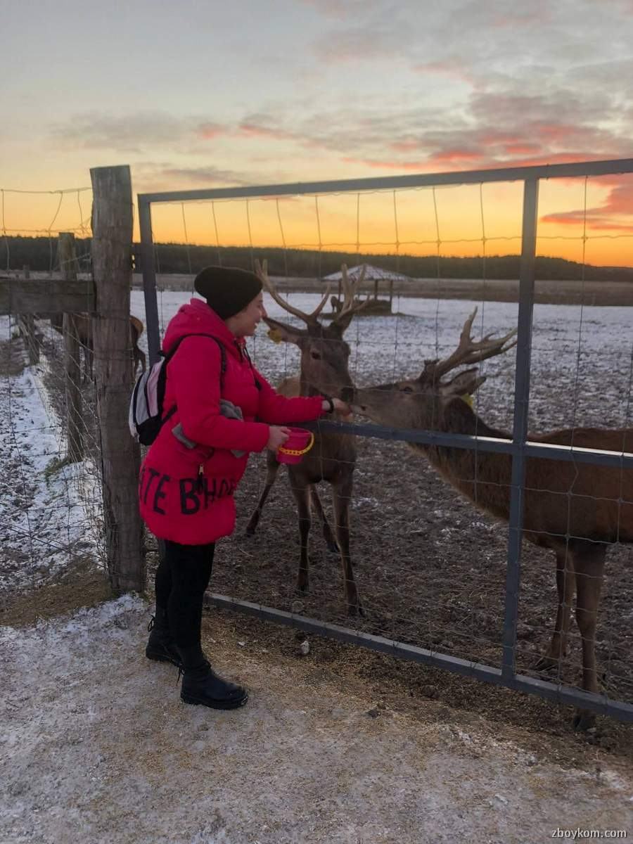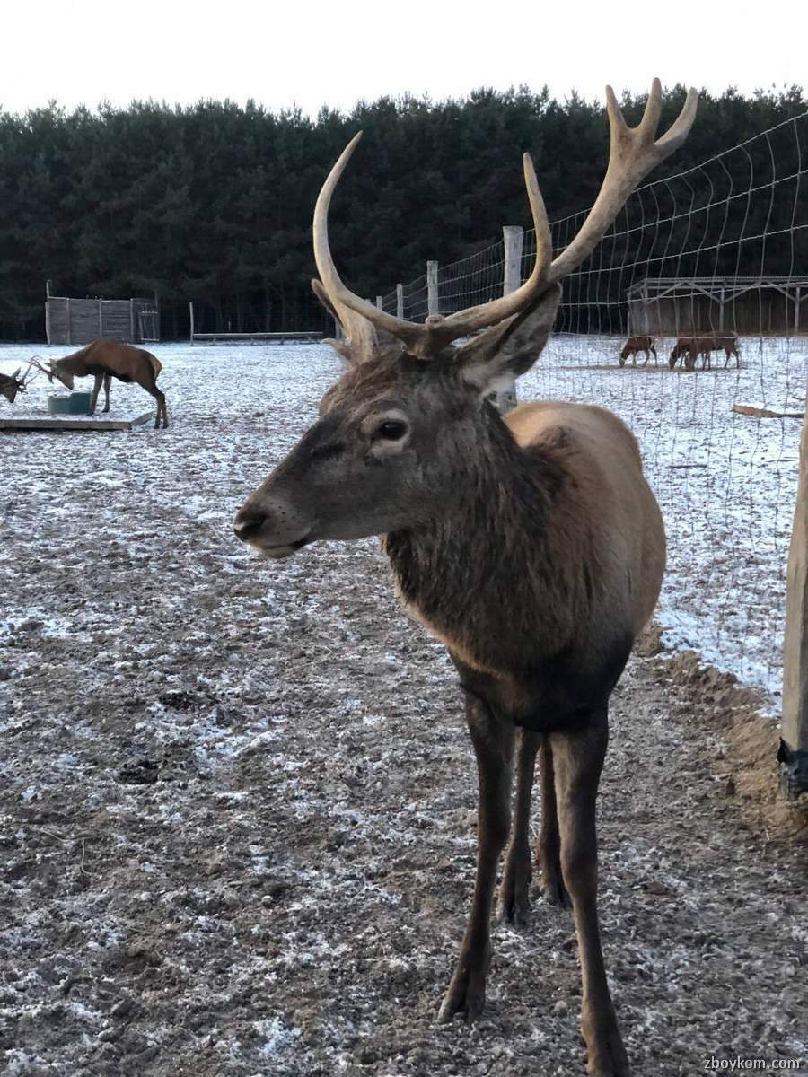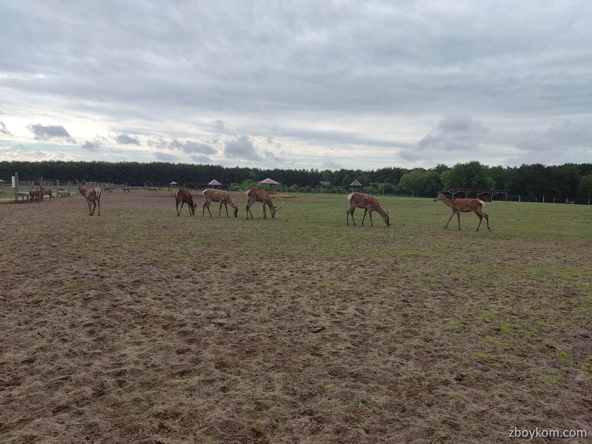 Оленяча ферма – місце, де на великій території у шести великих вольєрах живуть та щасливо почуваються олені різних порід. Олені залюбки підходить до огорожі, де їх можна погодувати спеціальним кормом (1 відерко десь на 1 літр вартує 5 грн, але задоволення маса)