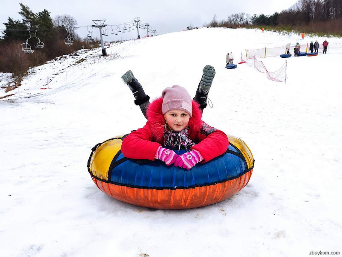 Тюбінг, гірськолижний комплекс «Майдан». Сучасний активний вид зимового відпочинку, катання зі схилу на надувних «калачиках», «пончиках» – саме так називають в народі тюби. Комплекс знаходиться посеред красивих лісів «Розточчя», на мальовничому схилі. Довжина спуску – 100 метрів.